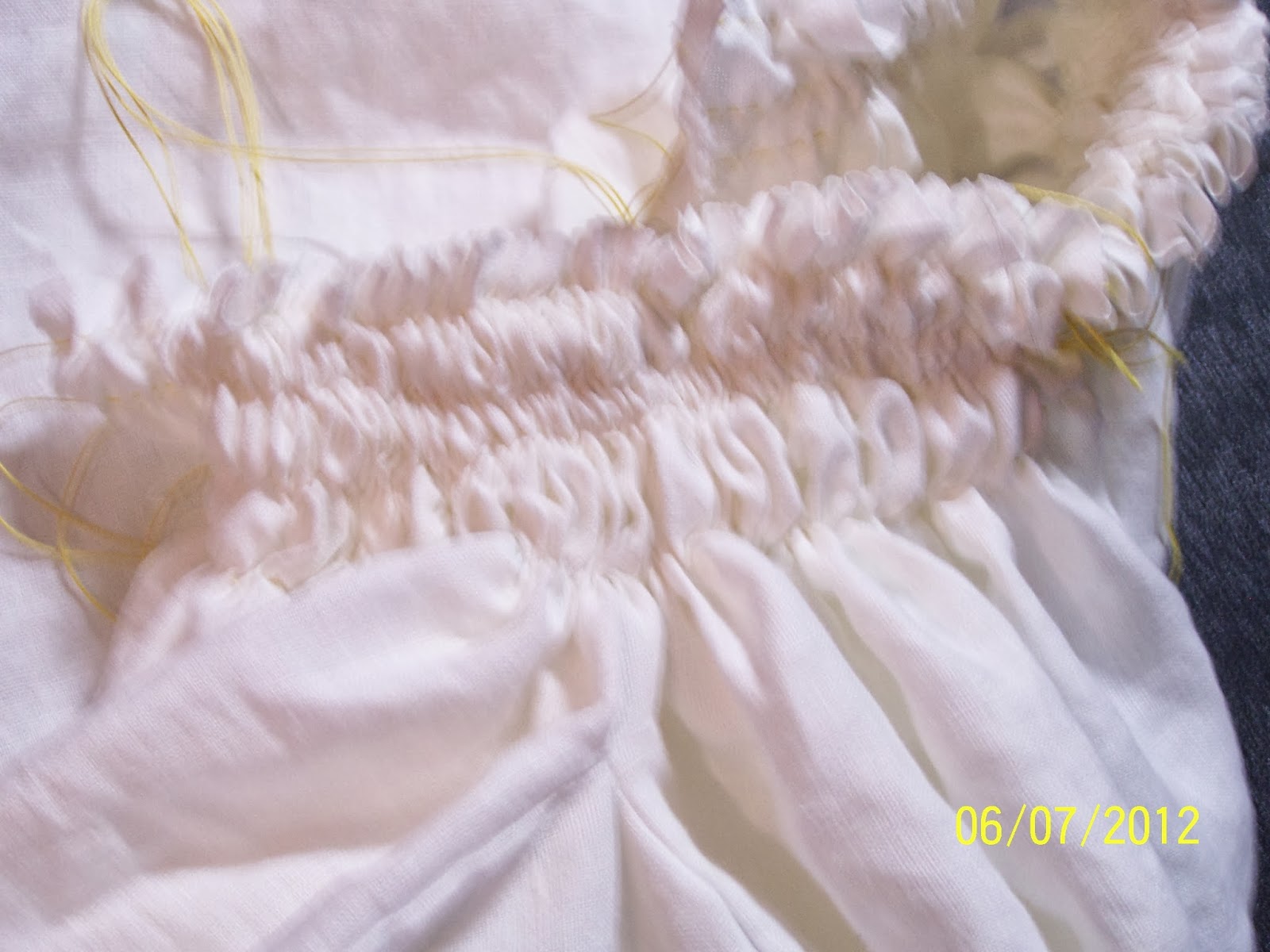 Post Construction: The recipient was happy with the results. There are a couple weak points in the garment, namely, the tip of the shoulder seam, which I had to darn. There have also been issues with pleats pulling from the backing--this was due more to the quality of the linen than my construction...however, if I remember correctly, I later went over the pleats with a running/backstitch to better anchor them.
